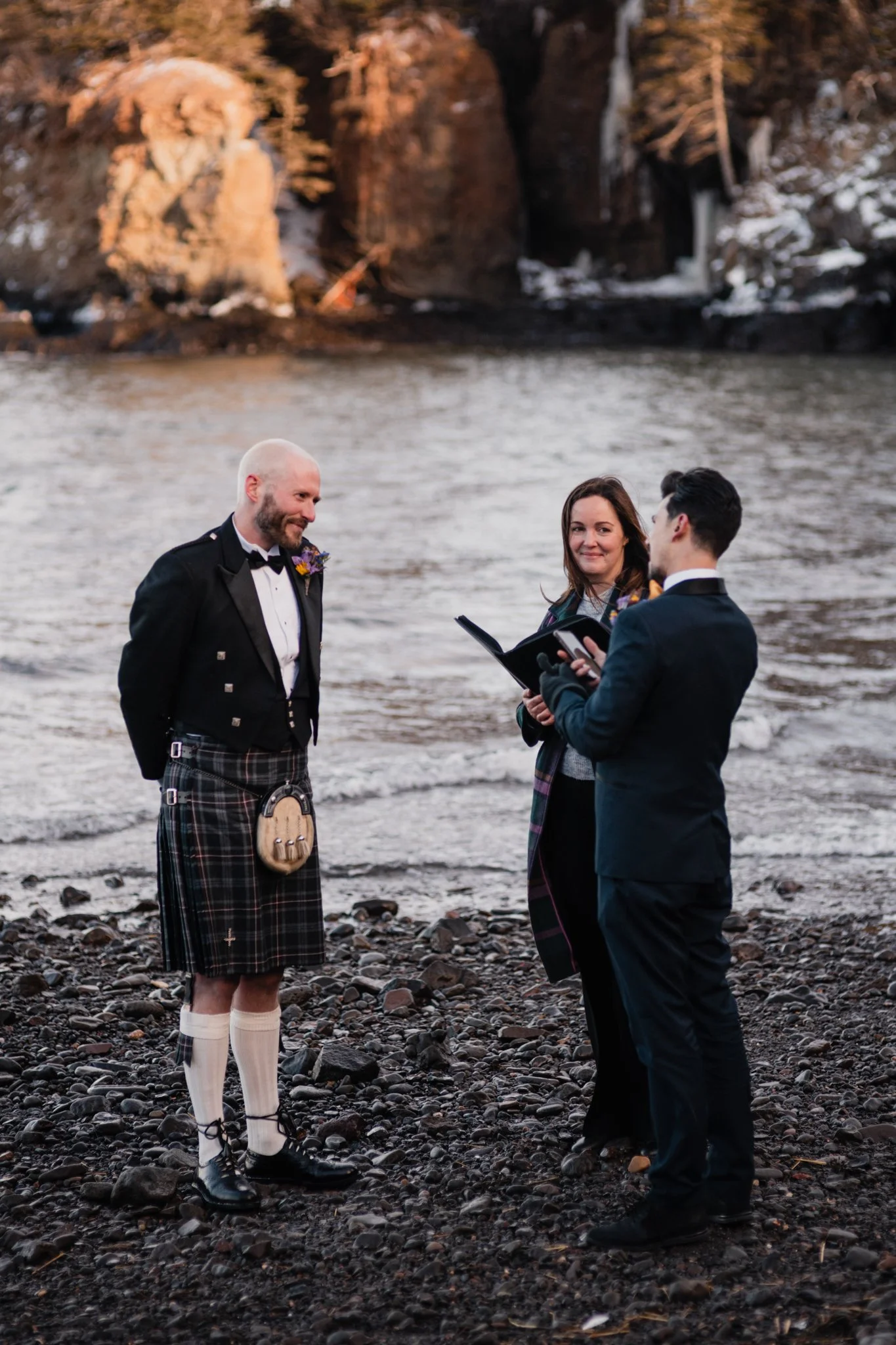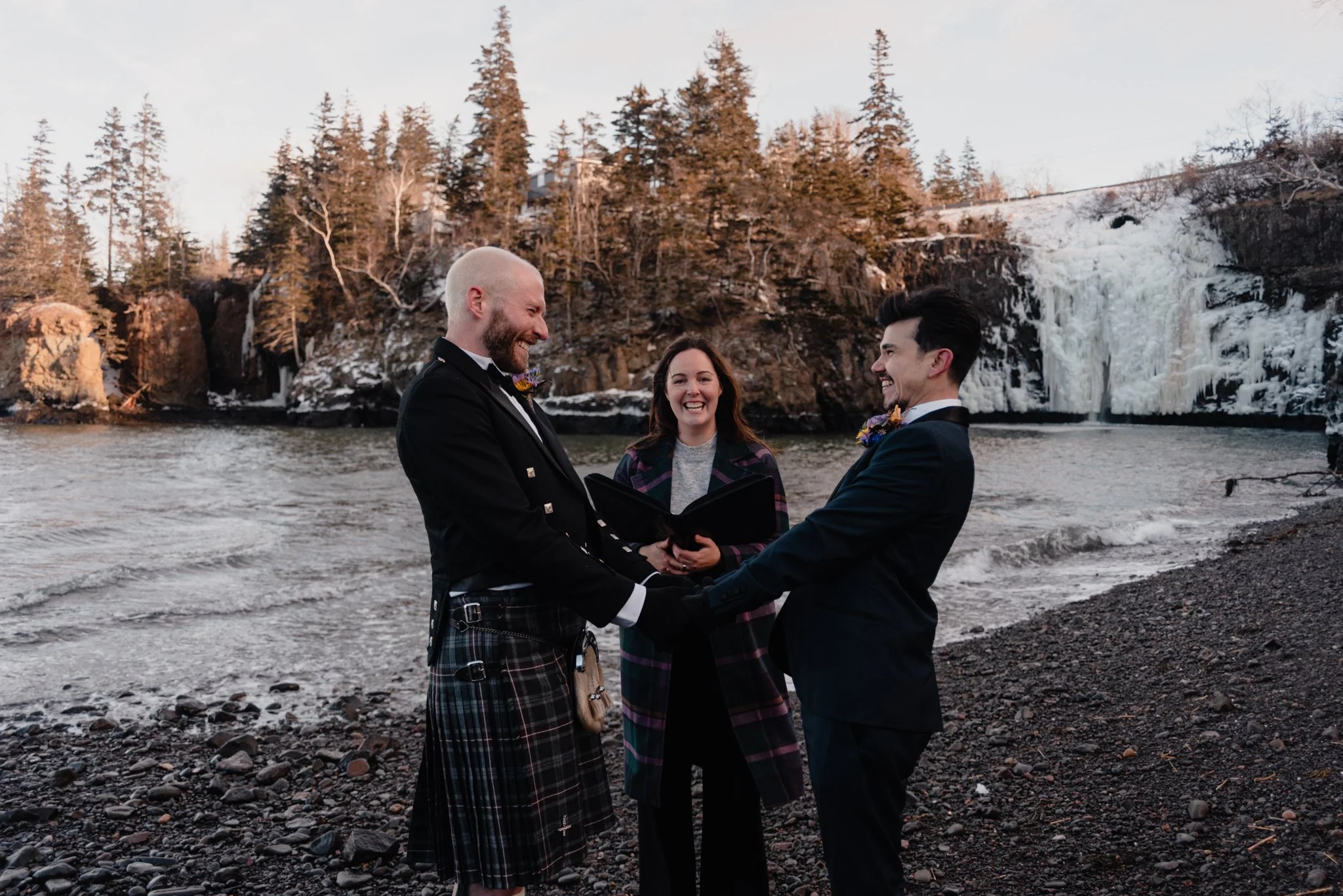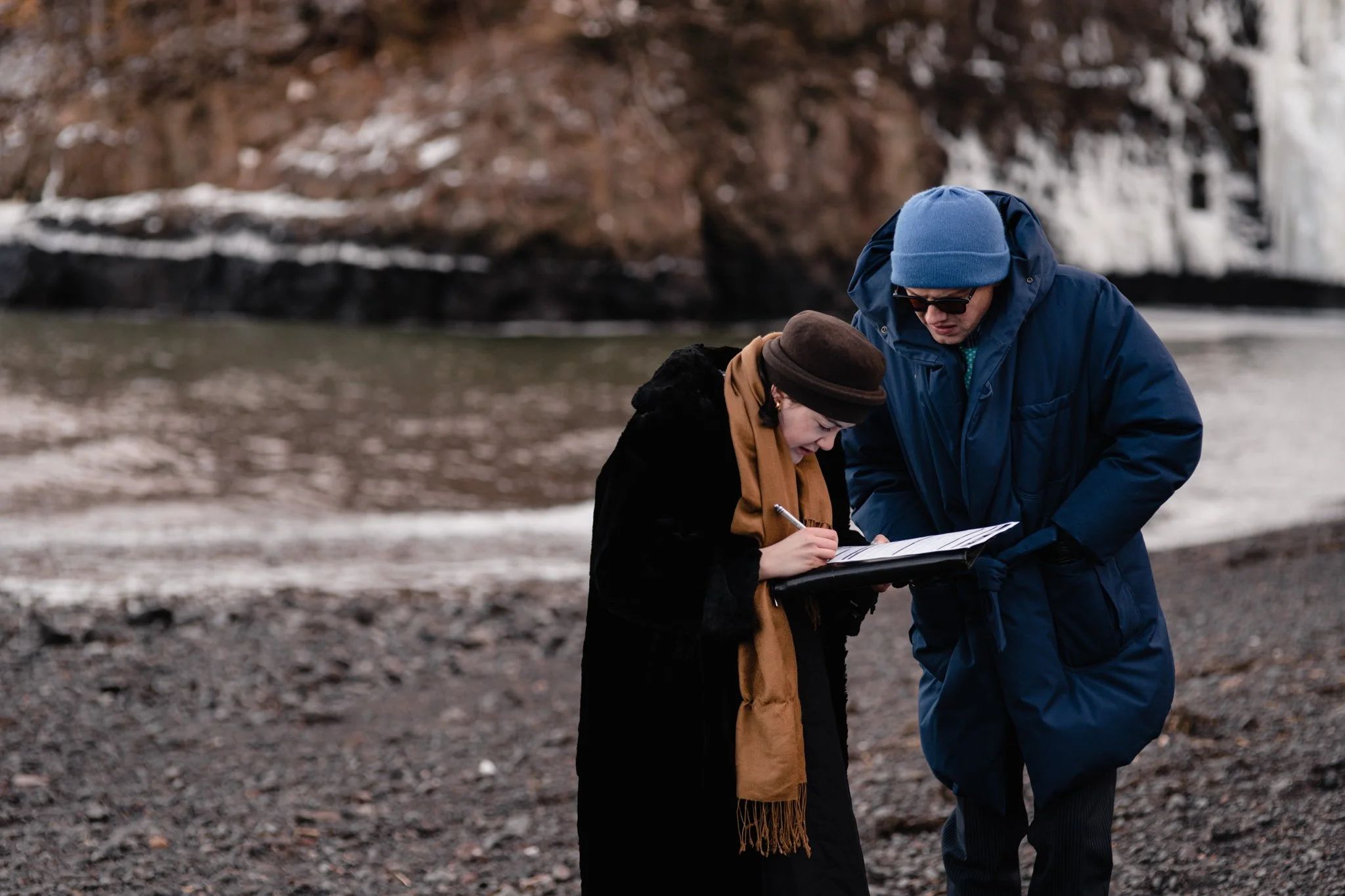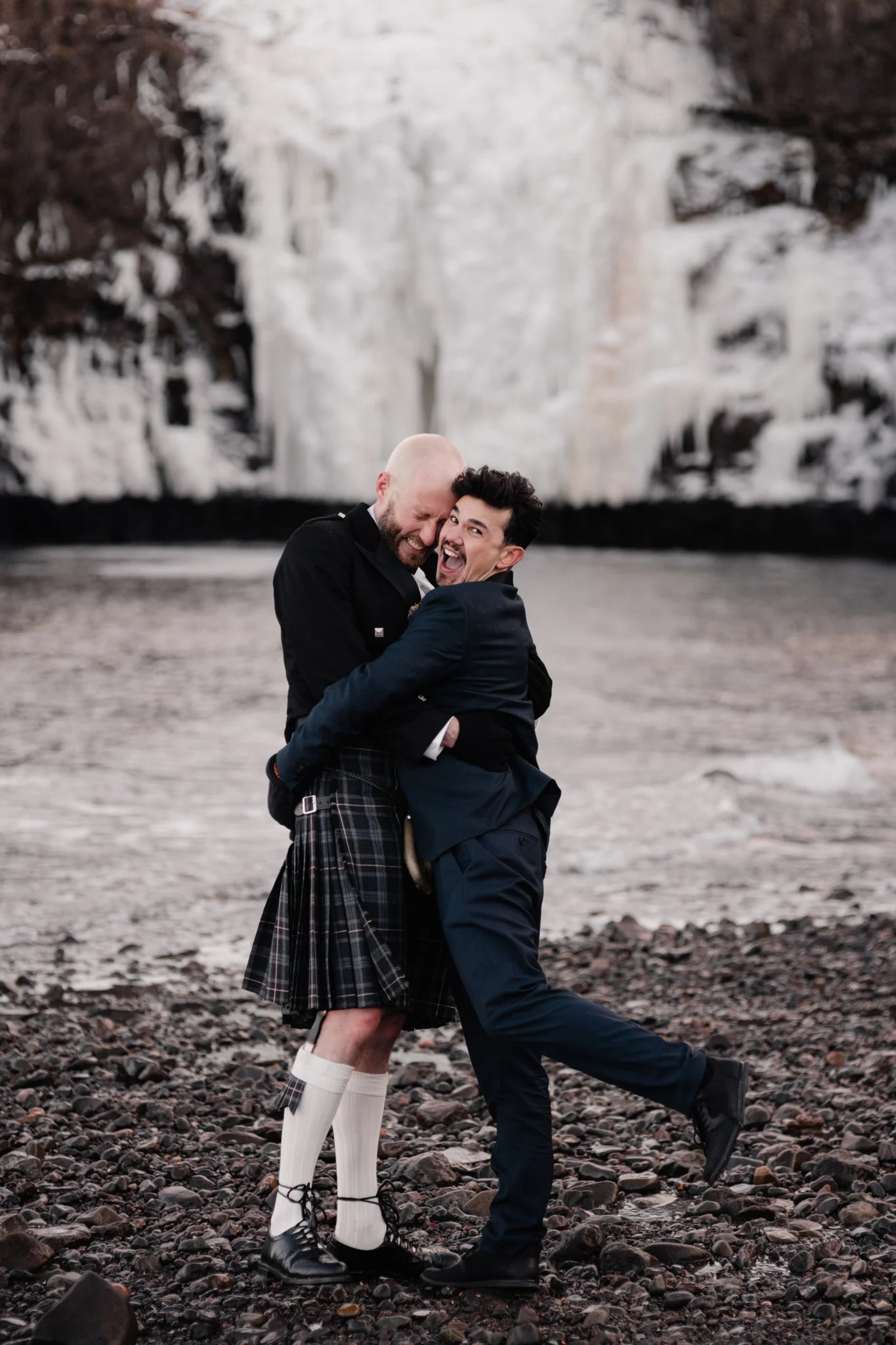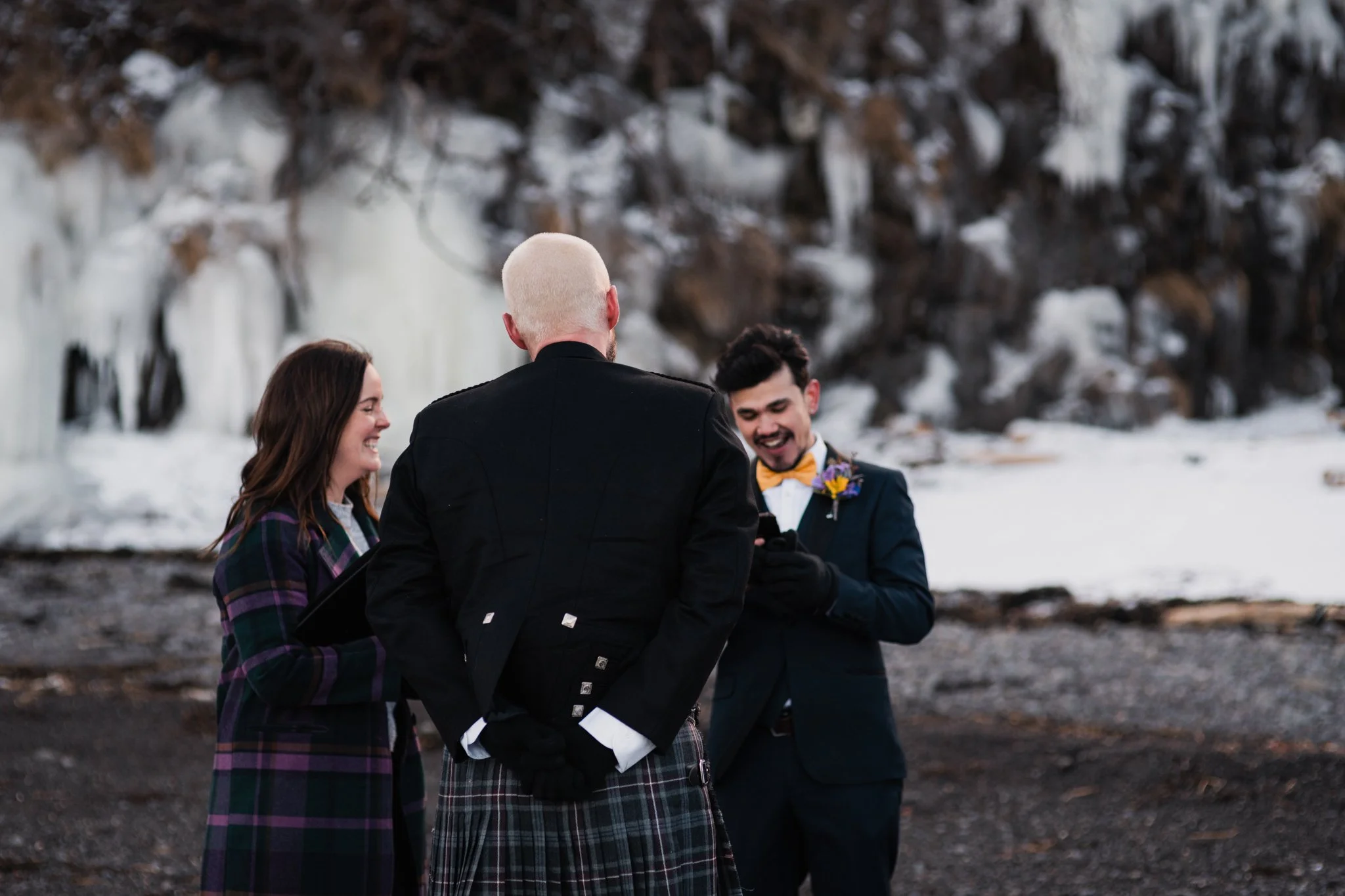 If there’s one thing you need to know about me, it’s that I am always down for a waterfall adventure, even when it’s below -20°C like it was on L + J’s elopement day. Expertly organized by Sarah of East Coast Pop Up Weddings, the ceremony was perfection, in spite of the cold.